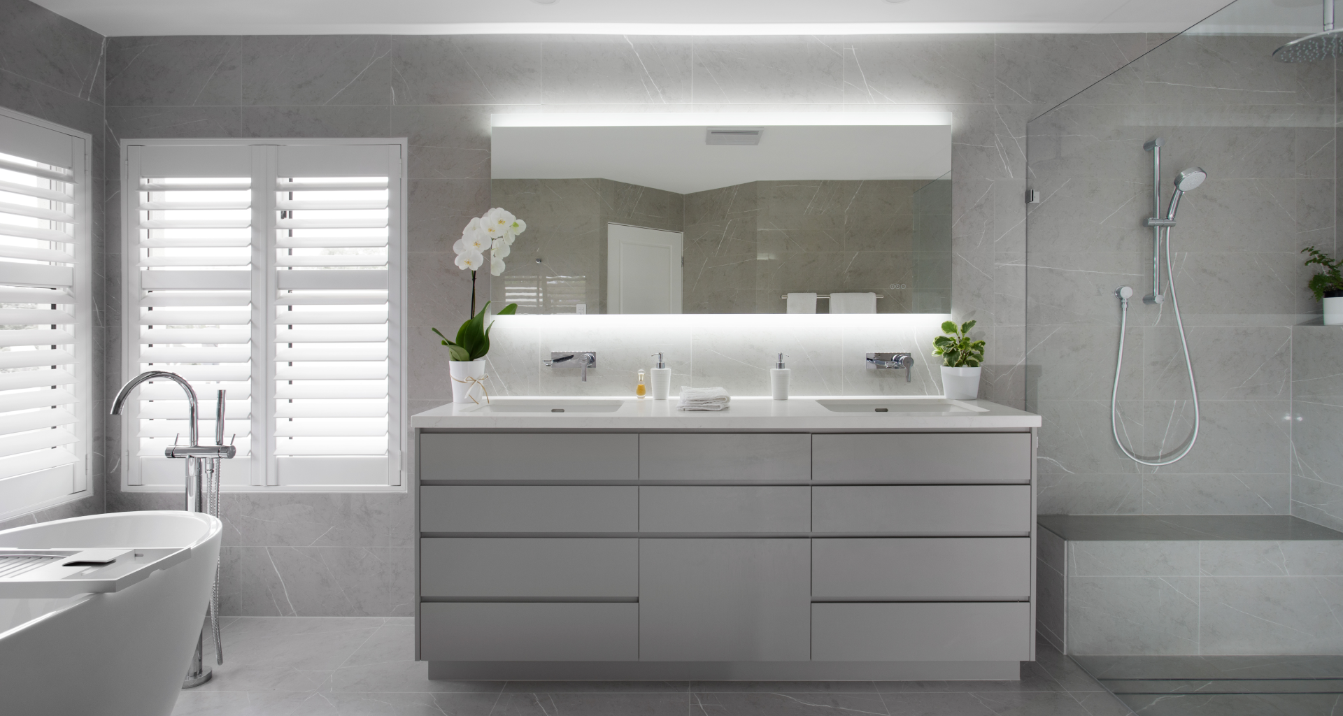 A light grey and white colour palette was determined and a more open modern ensuite layout was designed with the master bedroom and walk in robe complementing the space.
